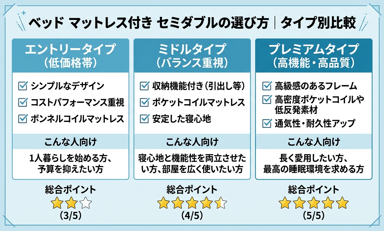 | 36 | 【新発売】ベッド セミダブルベッド セミダブル ベット シングルベッド セミダブルベッド ダブルベッド ベッドフレーム マットレス付き 収納付き 収納 収納ベッド グレー ブラウン 白 黒 宮付 おしゃれ 選べるフレームのみ/マットレス付 セミダブル | ¥24,999税込 | ★★★★★3.8 55件 | 収納スペースを確保しつつ、デザイン性と価格のバランスを重視したい一人暮らし初心者の方におすすめです。 |