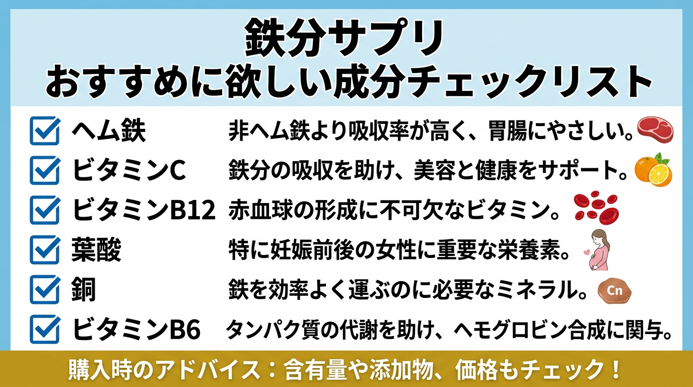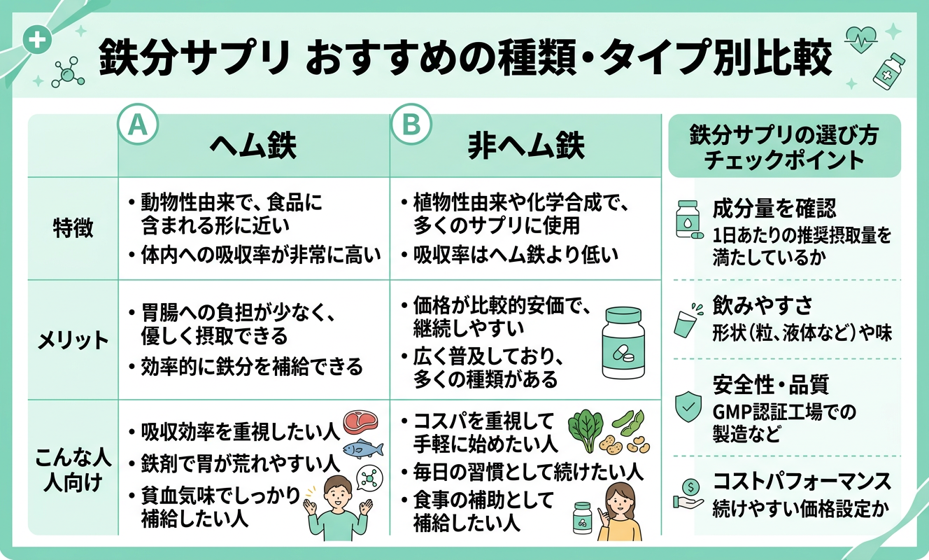 | 16 | 【5個セット 20%OFF】 フェリチン 鉄分 サプリ フェリチン鉄 エクセレント 60粒 5袋セット 栄養機能食品 鉄 1粒 5mg配合 150〜300日分 ヘム鉄 サプリメント が苦手な方におすすめ 亜鉛 ビタミンB12 銅 葉酸 鉄不足 補給 フラフラ【メール便】 | ¥11,910税込 | ★★★★★5.0 1件 | 他の鉄サプリで胃の不快感や吐き気を経験したことがあり、より穏やかな形の鉄を長期的に補いたい女性に向いています。 |