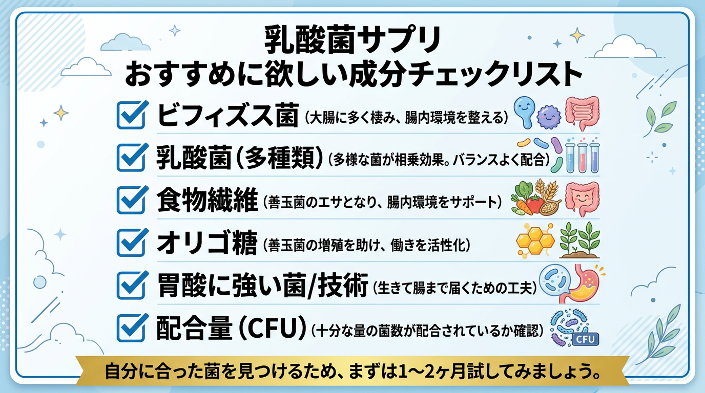 | 11 | \2280円→1140円★楽天スーパーSALE限定/ 乳酸菌 サプリ ラクトフェリン 善玉菌 ビフィズス菌 オリゴ糖 腸活 ダイエット 腸内 フローラ 菌活 菌トレ習慣 短鎖脂肪酸 食物繊維 ガセリ菌 ラブレ菌 30日分 一日2粒目安 【 22種類の 乳酸菌 】 | ¥1,140税込 | ★★★★★4.5 1,299件 | お腹の重さやスッキリしない日が続いていて、実績と口コミ数の多い信頼できる乳酸菌サプリをお得に試してみたい方に向いています。 |
