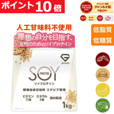 |  | 詳細 | GronG ソイプロテイン | ソイプロテイン | 4.35 | 2,980円 楽天市場 | Amazon | Yahoo! | 91kcal | 74.5円 | ビタミン11種・ミネラル3種 |