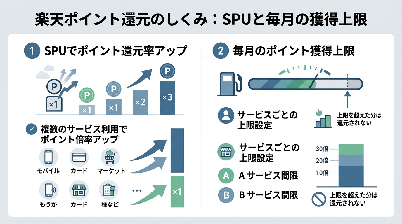 楽天ポイント還元のしくみ:SPUと毎月の獲得上限
