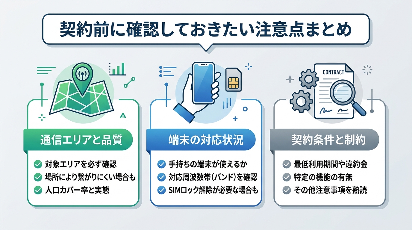 Rakuten最強プランのメリットは明確ですが、契約後に「思っていたのと違う」とならないために、事前に把握しておくべき点を整理します。